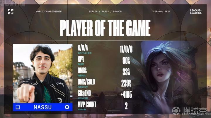 第3分钟,GEN三人越塔失误,Bwipo及时支援,Massu拿到双杀,FLY打出0换2,0-2(GEN在前)。